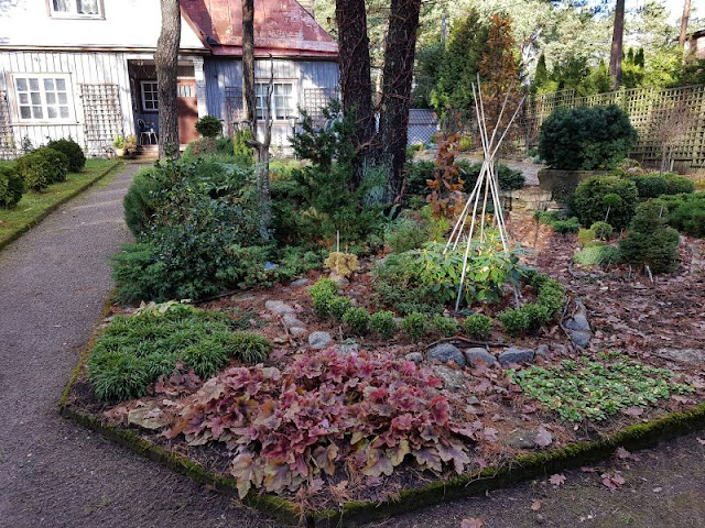 Suur pimedus on juba mõnda aega kestnud. Ega see polaaröö ka eriti pimedam saa olla kui tööl käiva aedniku november.Täna ent oli vaba päev ja isegi päike piilus aegajalt. Heitlehised on enamasti lehed ära heitnud, igihaljad ja hilisuinujad naudivad seda suuremat tähelepanu. Päevaplaanis oli koledaks läinud varte koristus ja viinapuude lõikamine. Otsisin üles paksuseinalise matkakruusi ja trepil tuulevarjus võis ette kujutada, et talv on veel kaugel. Aga tegelikult ei ole. Mine seda saabuvat nädalavahetustki tea. Aiatööde järg on küll selline, et võiks uue aastani toimetada, kui ilm lubaks.
